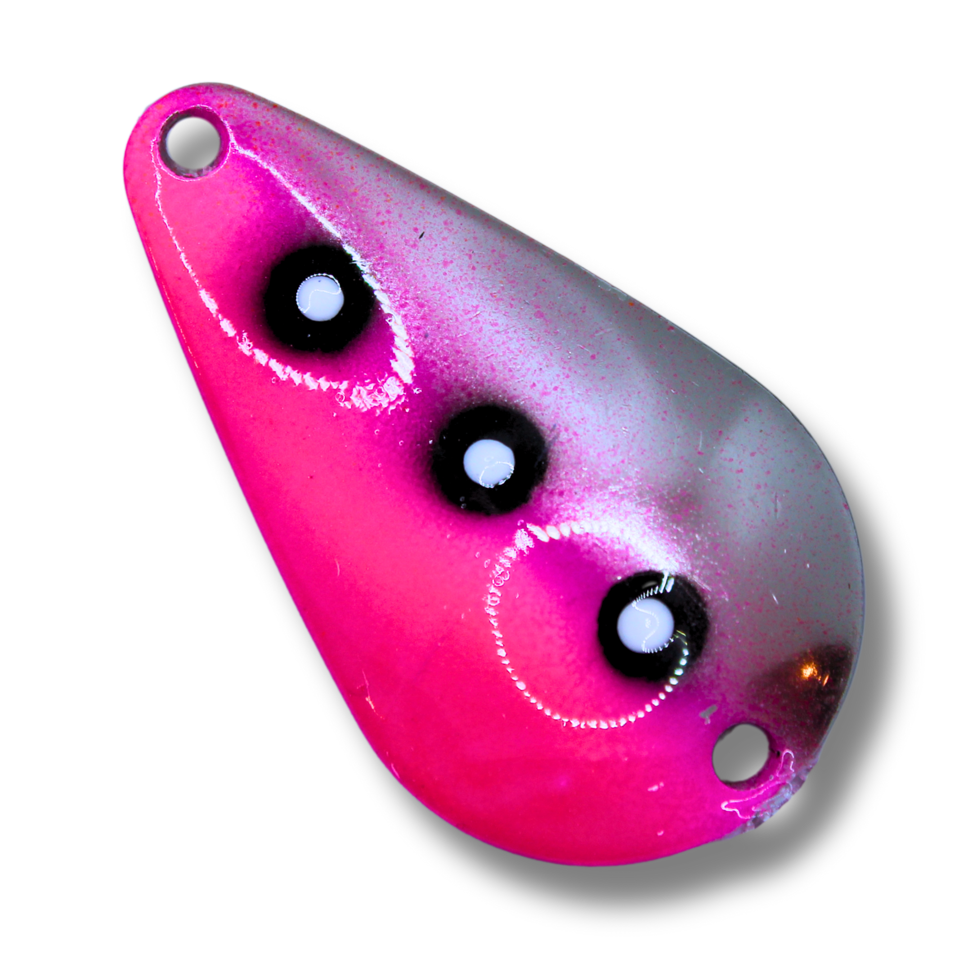Distinctive tear drop shaped casting spoons in two versatile sizes, featuring a unique, fish attracting wobbling action, durable 2X strength hooks, durable split rings and our "Fish On" topcoat.