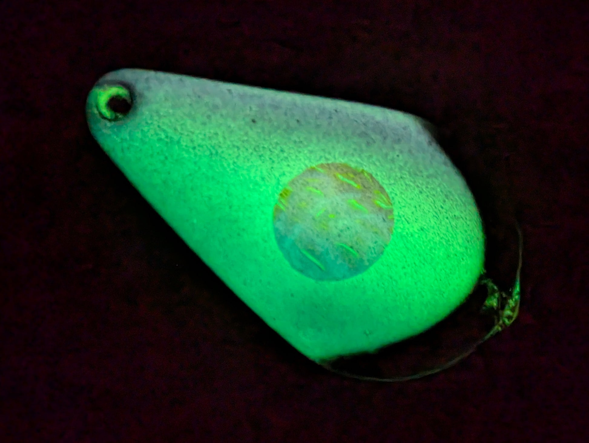 This ultra glow casting spoon features a multi-species pattern that is built for the river, lake, shore, or pier. Featuring our new glow product, holographic vinyl and UV florescent colours.