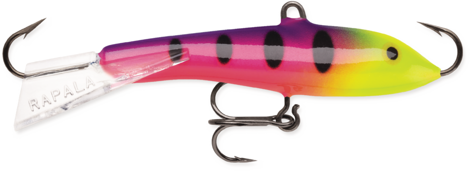 Swimming in tantalizing circles under the ice or in open water for suspended game fish, the Jigging Rap® features a balanced, weighted minnow profile. Single reversed hooks with center treble and eyelet, this bait can also be bottom bounced, yo-yo style off the bottom with unbeatable results. Wide range of sizes is complimented with natural and glow color patterns.
