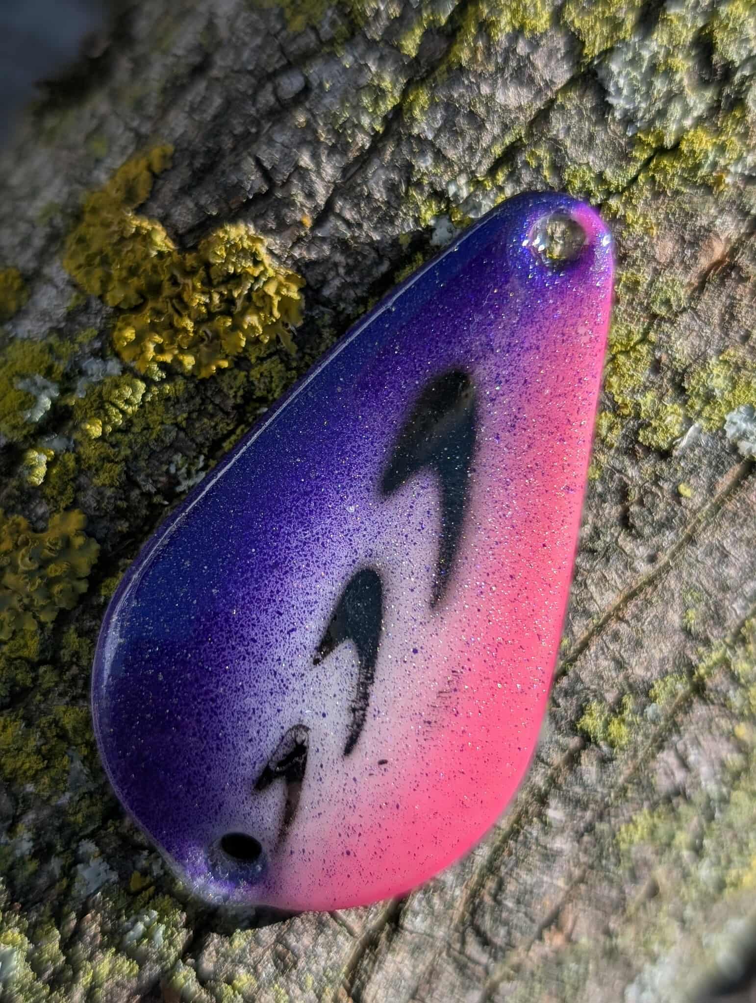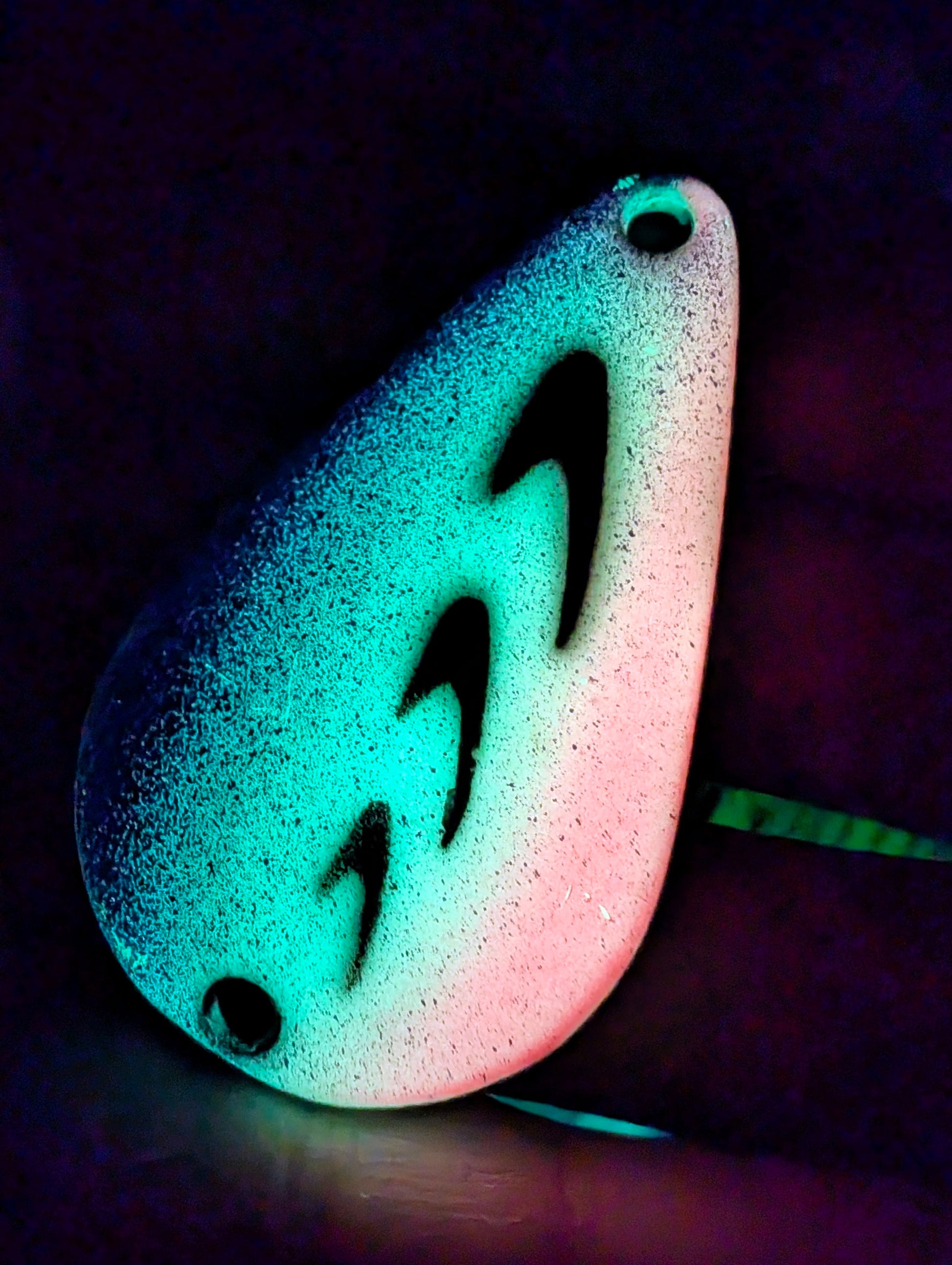 This ultra glow casting spoon features a multi-species pattern that is built for the river, lake, shore, or pier. Featuring our new glow product, holographic vinyl and UV florescent colours.