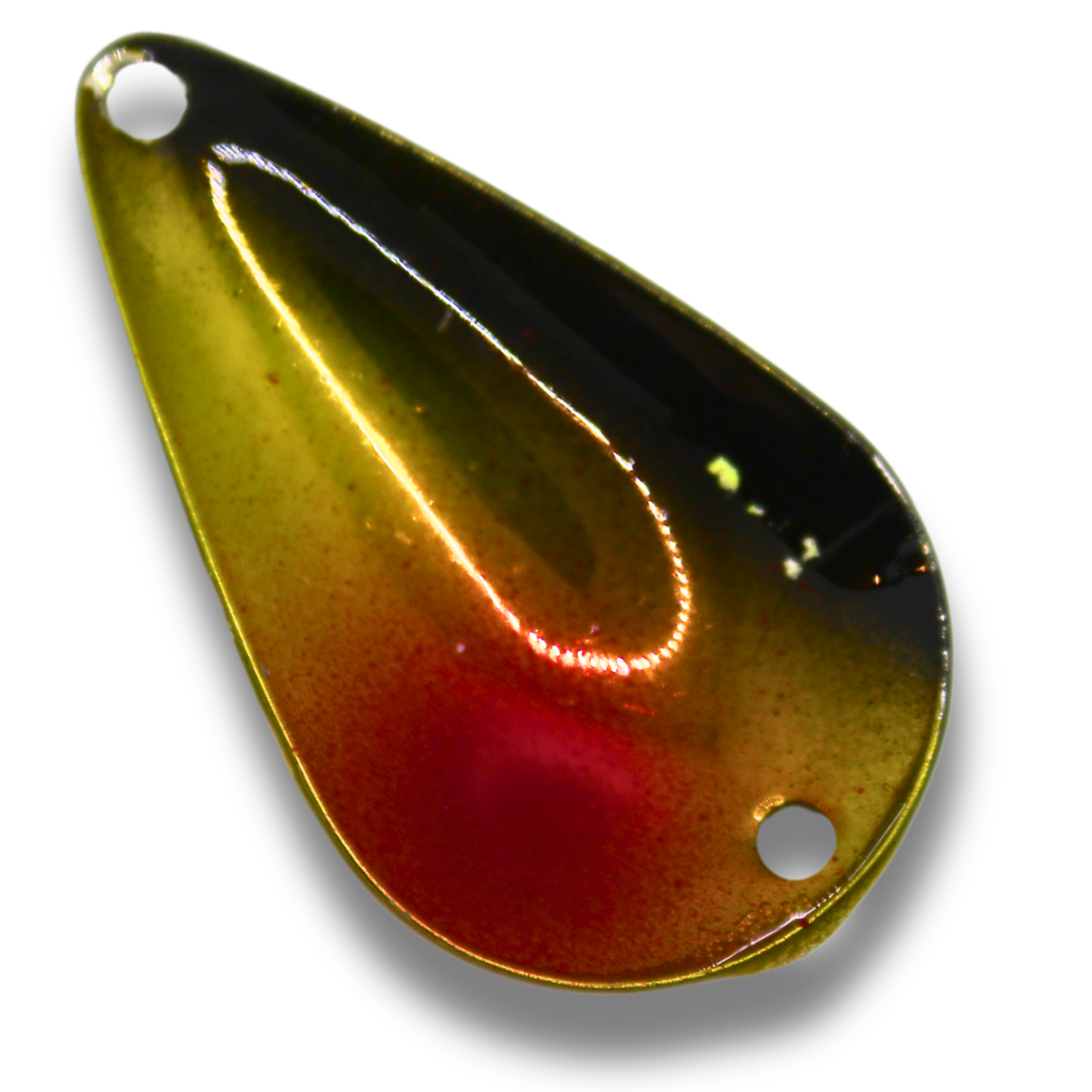Distinctive tear drop shaped casting spoons in two versatile sizes, featuring a unique, fish attracting wobbling action, durable 2X strength hooks, durable split rings and our "Fish On" topcoat.