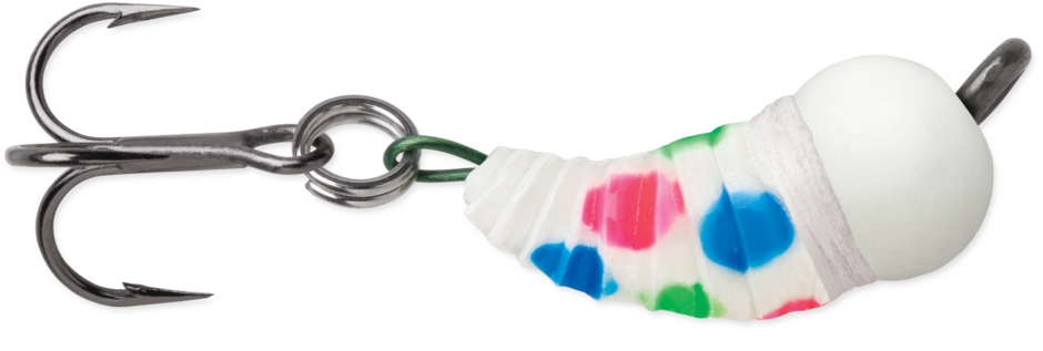 Small larva-like realism for strike inducing attraction. Lead free Tungsten construction provides the best sensitivity and return on traditional fish-finders and forward facing sonar. Premium VMC® treble hook increases hook up percentages. Available in polished metal or Ultra Glow pigments that last up to 15 minutes.